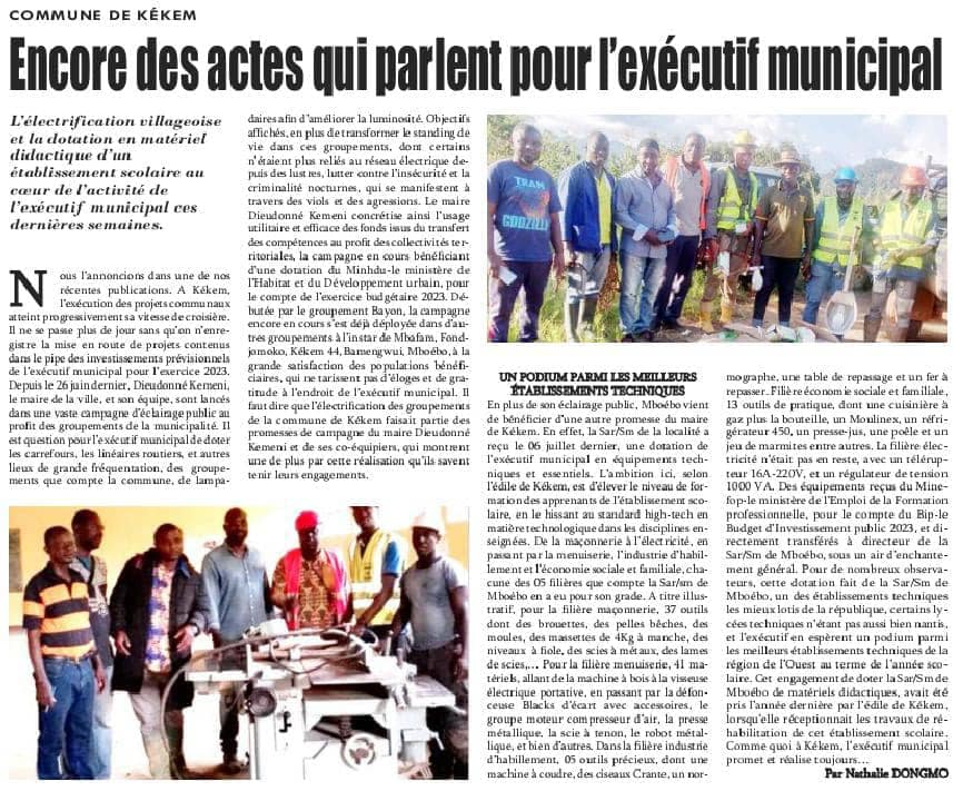 13/08/2025 A la une admin_8j3f58rd 0 Comments Share: Centre multifonctionnel de promotion des jeunes MBOEBO : LA SAR -SM dotée de matériels de pointe